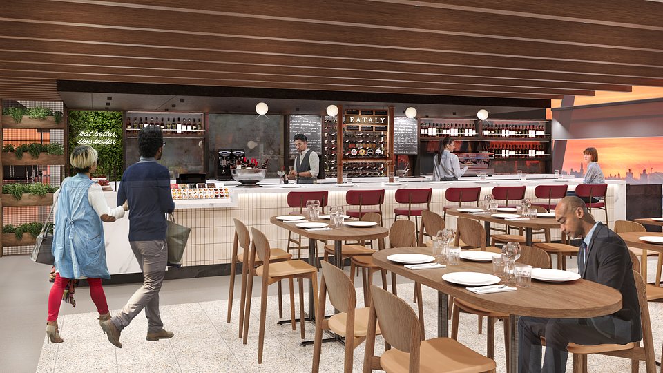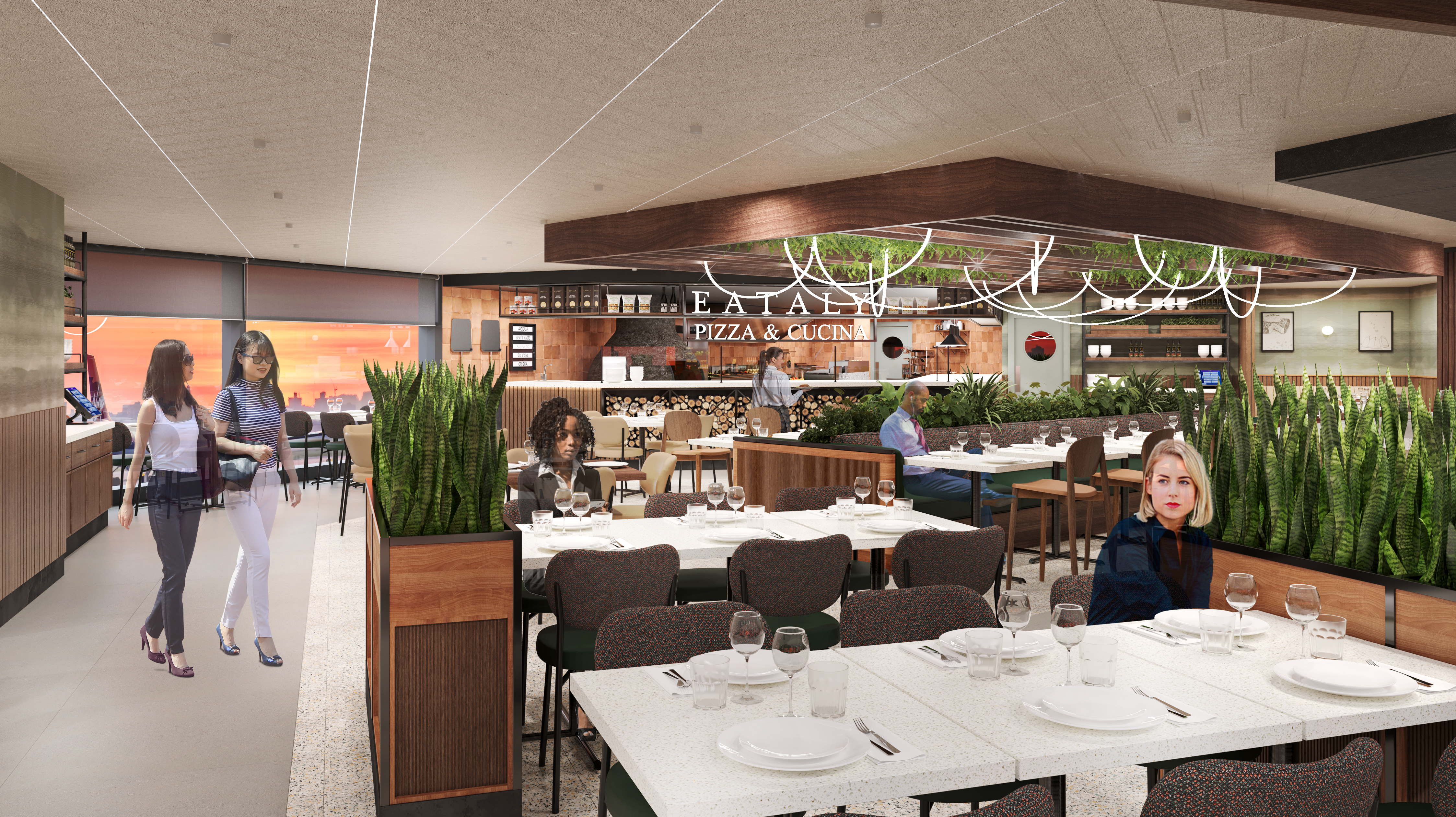 The familiar space will blend gleaming quartz countertops, hand-crafted ceramic tiles, and textured woods paired with warm metal accents, all bathed in natural light and softened with Eataly’s signature greenery and olive trees. Every detail—from custom banquettes and artful planter boxes to artisanal pizza ovens and bespoke lighting—has been carefully curated to transport travelers to Italy, even while en route to their next destination.